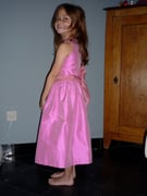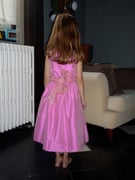 Robe pour enfant en soie doupion rose bonbon et noeud en organza rose.