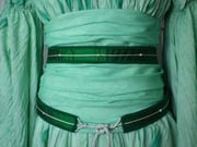 -> d'une large ceinture drapée en soie verte (genre corselet pour utiliser un terme moderne), allant de sous la poitrine aux hanches