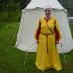 - robe à manches dépassées en laine jaune doublée de lin fin: on peut passer les bras dans la manche, ou